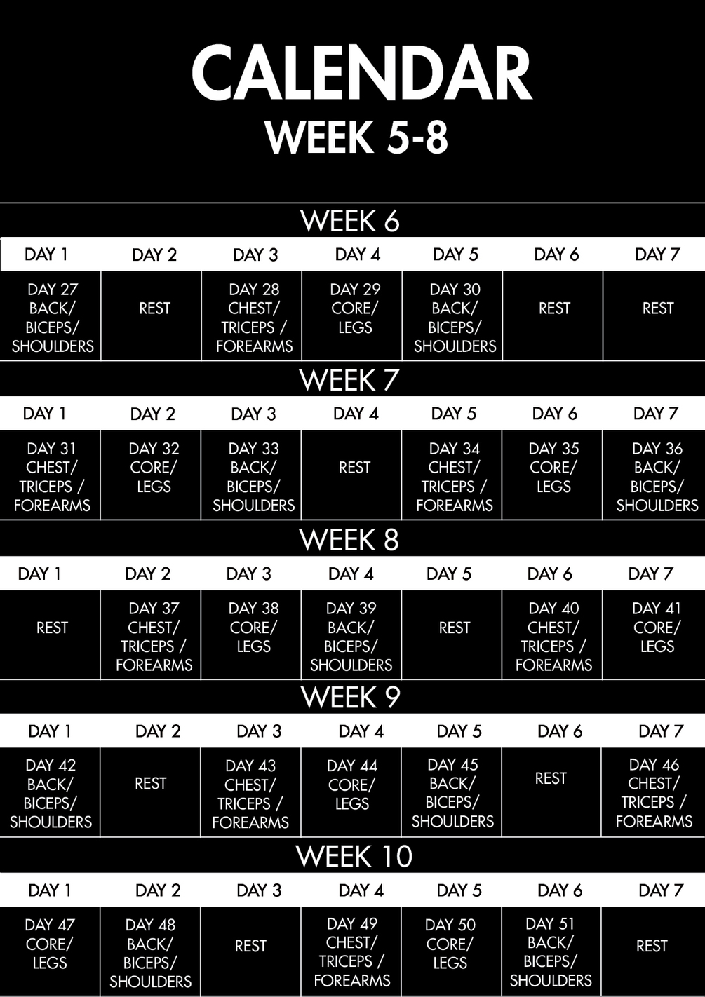 You'll also work on exercises that target specific muscle groups, such as the chest, back, arms, and legs, to help you build muscle mass and definition. With regular practice and commitment to the program, you'll be able to see significant improvements in your physique and overall strength in just 10 weeks.